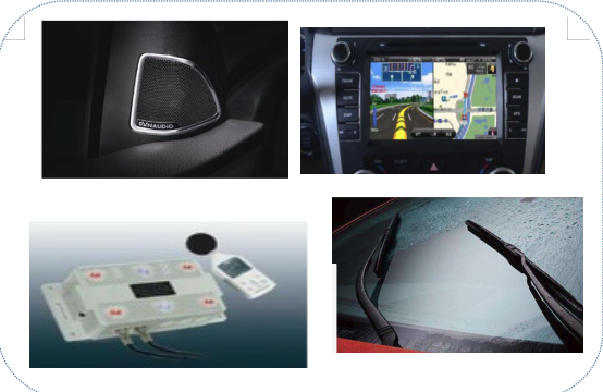 車載電視/音響,DVD/GPS,防盜器,雨刮,機(jī)動車電喇叭,洗滌器,轉(zhuǎn)向柱上組合開關(guān),翹板開關(guān),保險絲、各類電機(jī)、點火線圈,繼電器、車載充電器、車車載按摩/加熱坐墊、車載風(fēng)扇、車載空調(diào)、車載電水壺、車載冰箱、車載咖啡壺、車載電動千斤頂、車載吸塵器、車載電動工具、信號閃光器、玻璃升 降器……