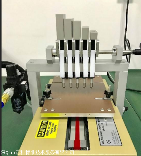 主要檢測汽車內、外飾件中平滑、紋路塑料飾件的耐磨性。除了材料和產品的開發,也適用于質量的控制。五指刮擦/劃傷測試儀的設計是為塑料材質評估、堅硬材質耐磨、油漆、油墨、軟金屬、油地毯、附加件和其它材質的檢測