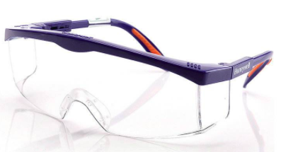 在眼鏡架框內裝有各種護目鏡片的眼護具。
