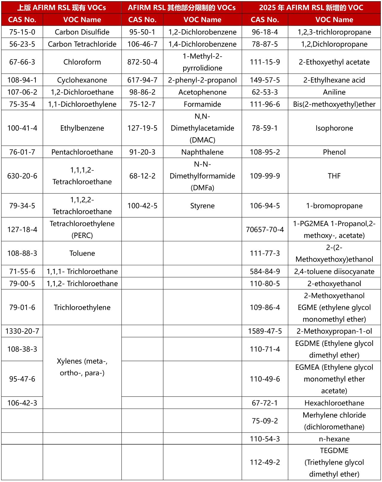 近日,服裝及鞋襪國際RSL管理(AFIRM)工作組發布了2025版限用物質清單(RSL),此次是繼2015年以來的第10次更新。