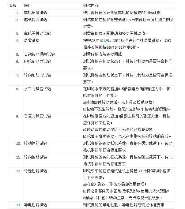 測試標準:GB/T14687-2011工業(yè)腳輪和車輪二.范圍: