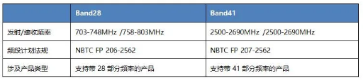 2020年10月26日,NBTC決定駁回僅支持Band 28和Band 41部分頻段的WWAN用戶設(shè)備申請。